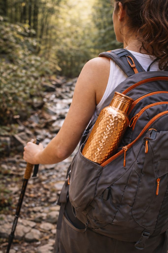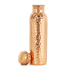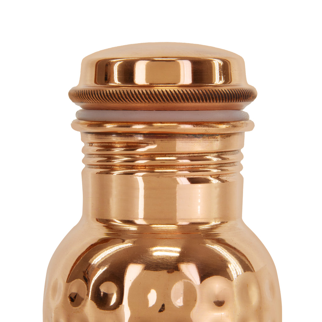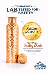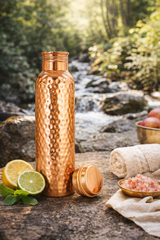 Experience the ancient Ayurvedic tradition of drinking water stored in copper. This 33 oz pure copper bottle is hand-hammered by artisans in Nepal, designed to naturally purify water and support daily wellness. Durable, leak-proof, and beautifully crafted, it is perfect for home, yoga, office, gym, or travel.