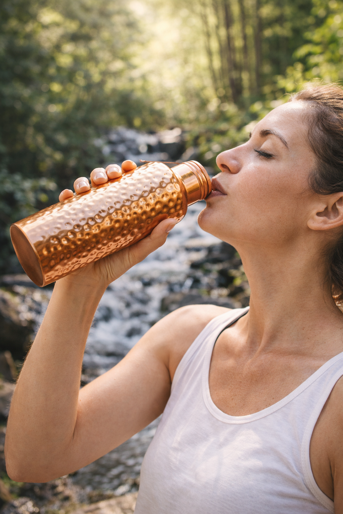 According to Ayurveda, storing water in copper overnight may help balance the body’s three doshas (Vata, Pitta, Kapha) and support digestion.